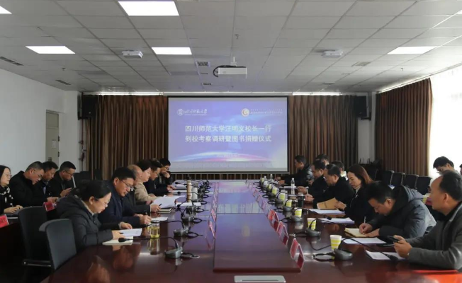 12月30日,四川师范大学校长汪明义一行到我校调研,并在行政楼1508会议室举行了调研座谈会暨图书捐赠仪式。