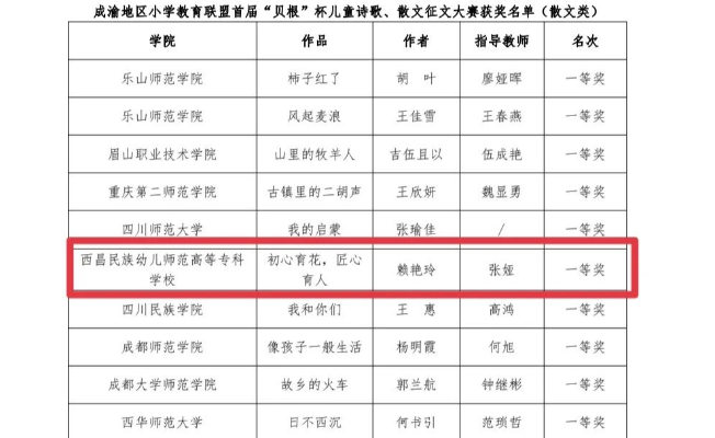 我校10件作品在成渝地区小学教育联盟首届“贝根”杯征文大赛中获奖