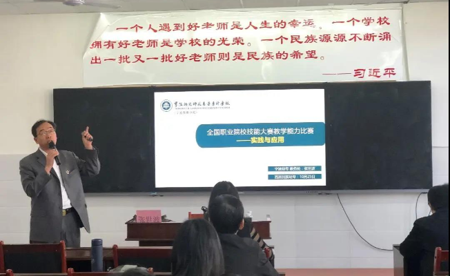 10月25日下午,宁波幼儿师范高等专科学校张世波教授为我校教师带来了一堂题为《全国职业院校技能大赛教学能力比赛》的专题讲座。