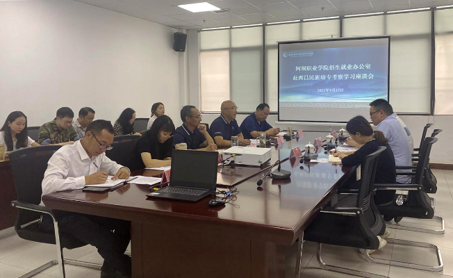 9月17日,阿坝职业学院招生就业办公室主任何志远一行到我校交流学习,我校招生就业处处长杨凯及招生就业处、辅导员代表参加座谈会并作分享交流。