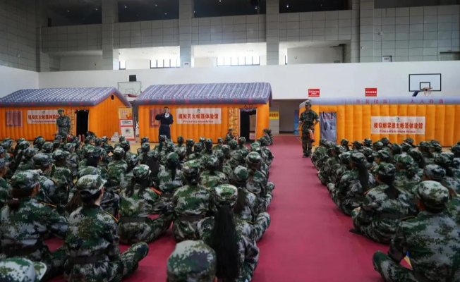 9月23日,学校在体育馆内搭建了两个模拟灭火帐篷体验馆和一个模拟烟雾逃生帐篷体验馆,组织全体新生依次进入实操体验。
