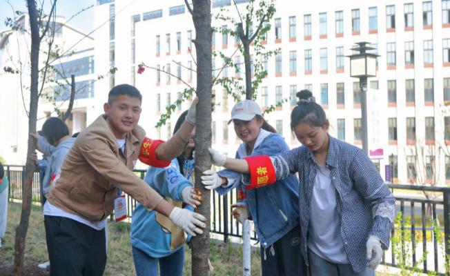 3月12日上午,在第43个植树节来临之际,我校组织师生校园内开展“种下一片林,厚植爱党情”主题植树活动。
