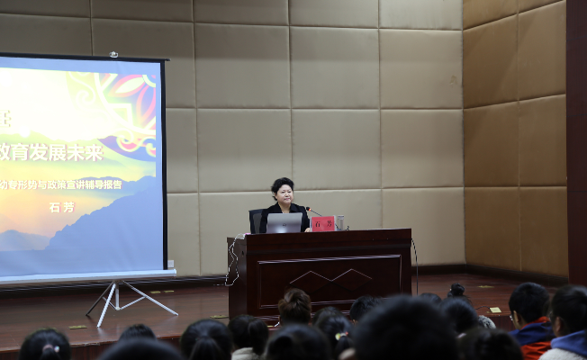 学校党委书记石芳为青年学生上形势与政策课