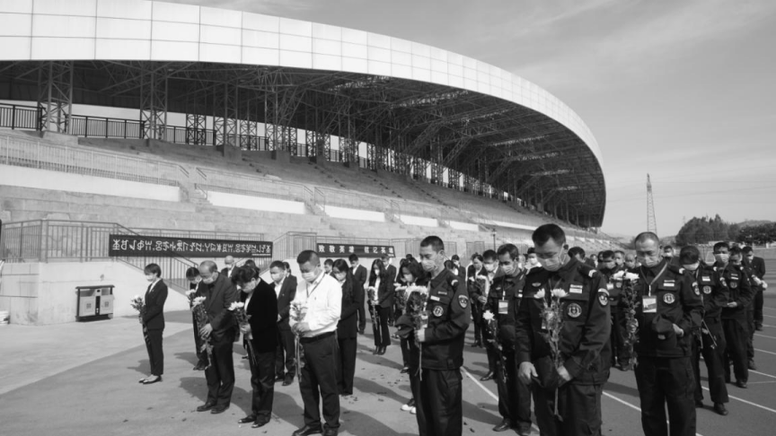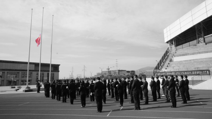 全体人员着黑色正装出席,庄严肃穆,举行升国旗仪式之后下半旗志哀。10点整,防空警报声拉响,全体人员默然肃立,向在抗击新冠肺炎疫情斗争牺牲烈士和逝世同胞以及在西昌市经久乡马鞍村森林大火中牺牲的扑火英雄默哀3分钟。默哀结束后,全体人员向牺牲烈士、扑火英雄、逝世同胞献花致敬。