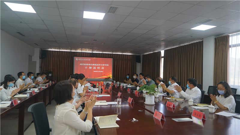 4月20日,我校召开干部送任大会,州委组织部部务委员、干部三科科长吴开源,州委组织部干部三科副科长瓦其木呷送成国志、马辉、侯中太、马娅群、邹玉泉5名同志任职。校领导班子成员、各系部负责人(联络员)、教职工代表参加会议。