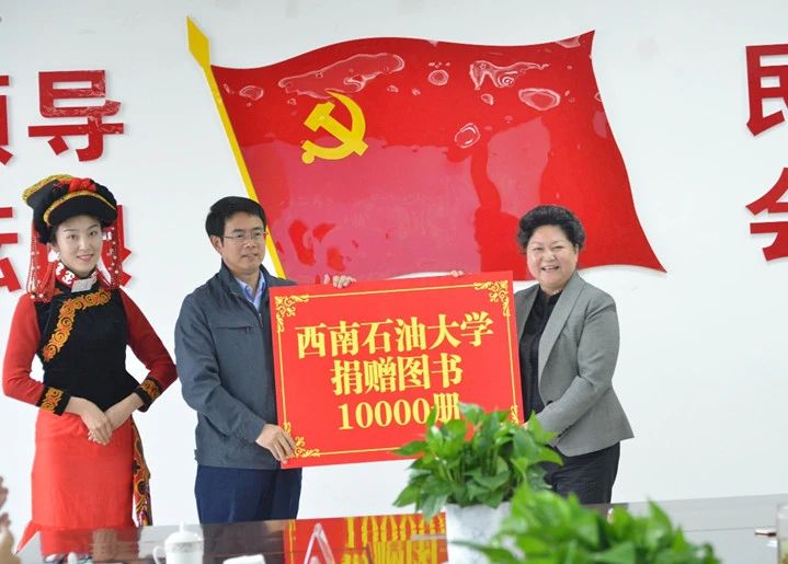 会议最后举行了图书捐赠仪式,石芳代表学校接受了西南石油大学捐赠的10000册图书。