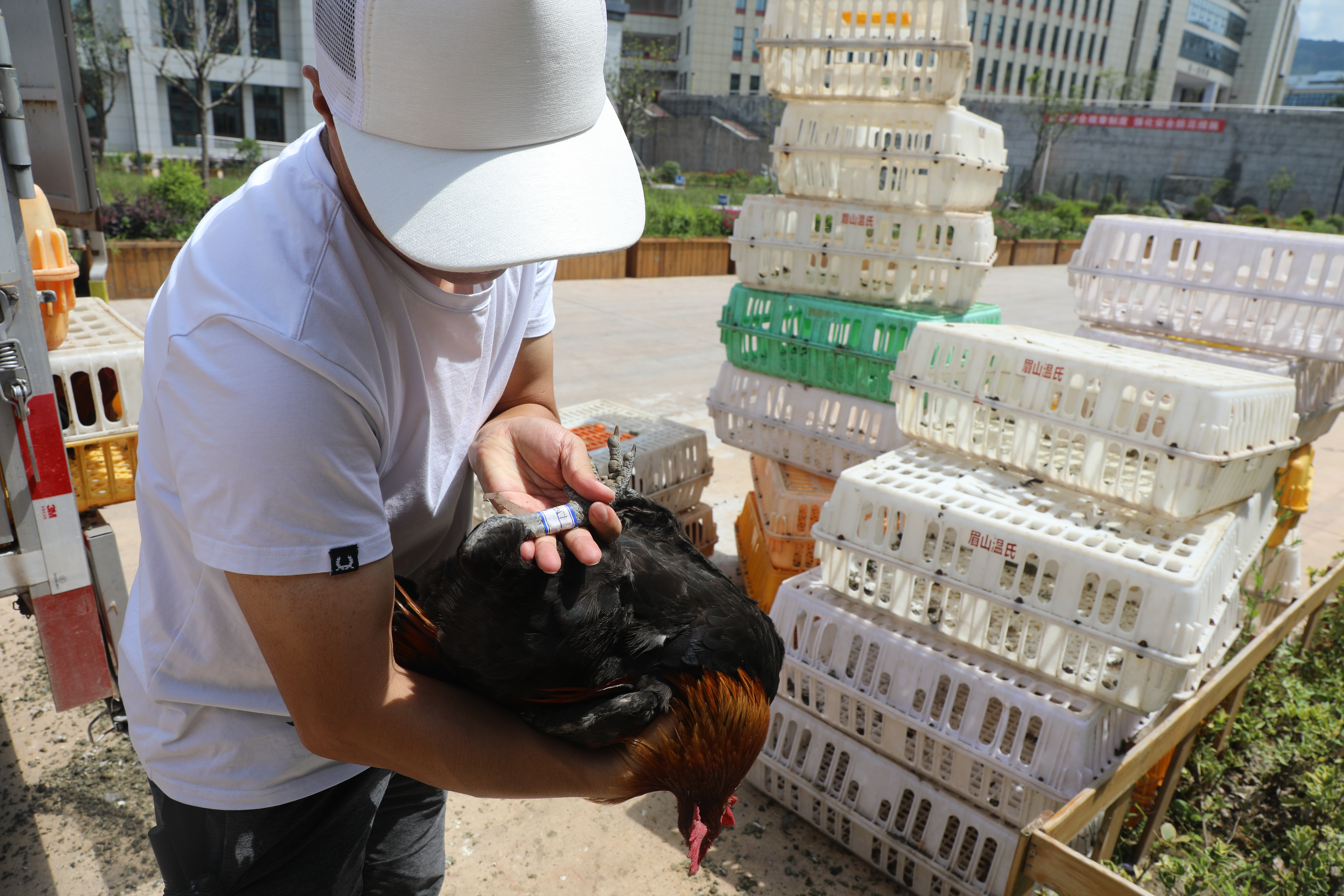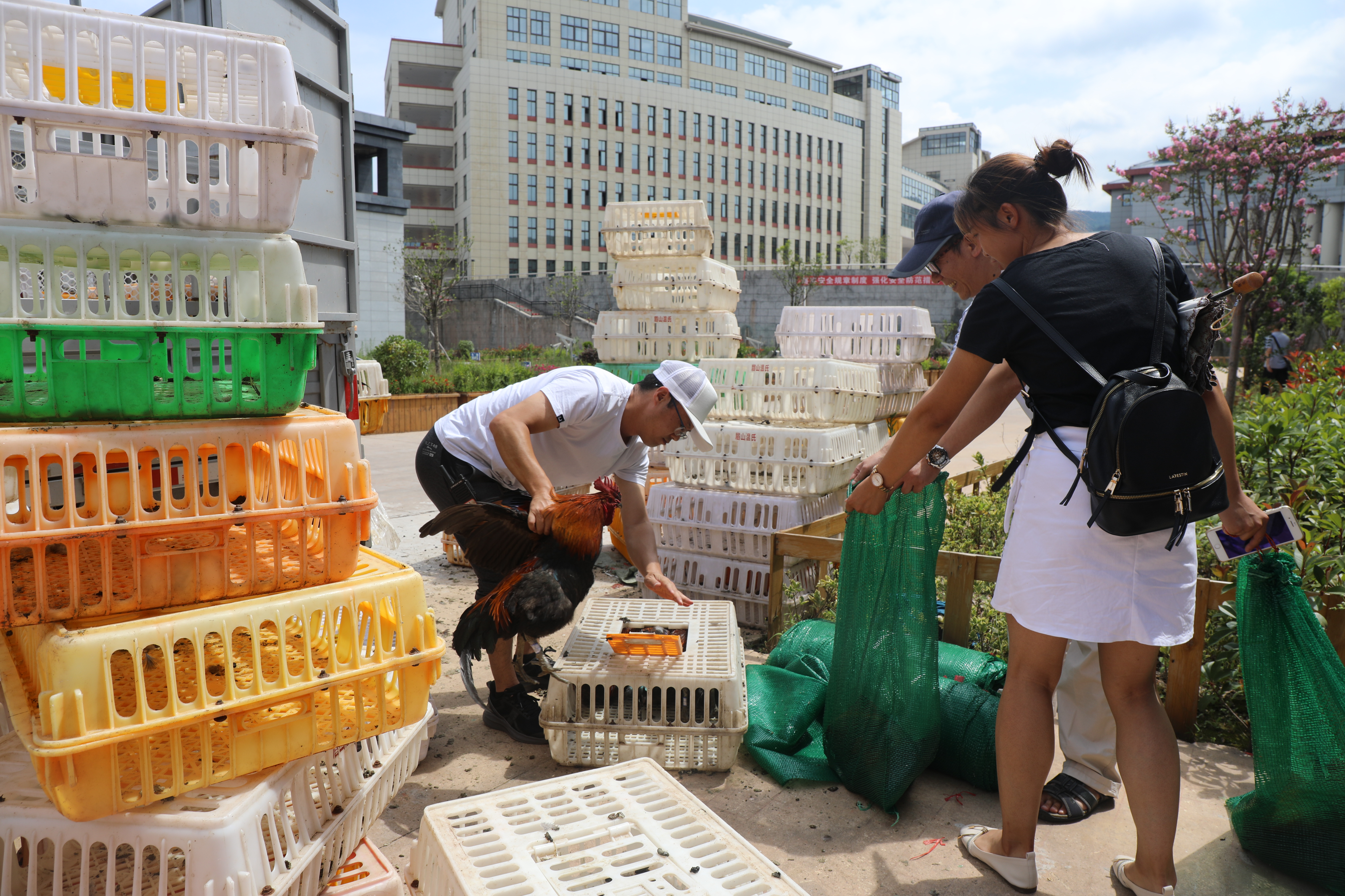 7月24日,学校全体教职工在西大门进行现场认购,领取从美姑远道而来的扶贫鸡。这批高山鸡是学校于今年春季免费发放给采乃坚村村民,由专人指导喂养,再通过“以购代捐”的方式进行“回收”。为方便广大教职工,学校还联系商户进行现场宰杀。