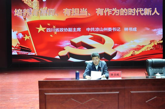 林书成书记的报告紧紧围绕习近平总书记在学校思政课教师座谈会上的重要讲话精神以及习近平总书记《关于坚持和发展中国特色社会主义的几个问题》等重要文章,从坚定“四个自信”,做中国特色社会主义事业的坚定信仰者;厚植凉山情怀,做推动凉山脱贫奔康富民强州的模范担当者;提升办学水平,做推进民族地区教育事业发展的无私奉献者三个方面,深刻阐释了如何做一名有信仰、有担当、有作为的时代新人,主题鲜明、寓意深刻。