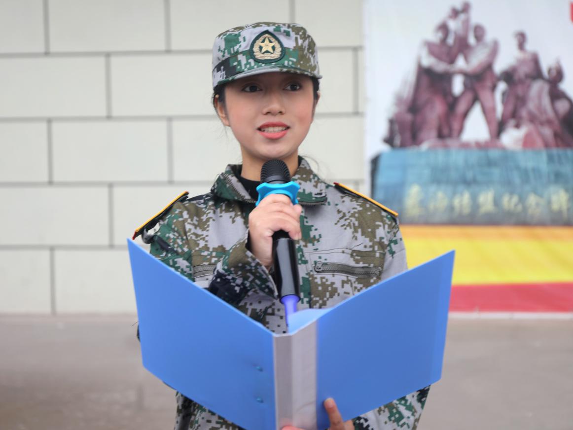 2020级7班巫鑫艳同学代表全体参训学员发言,对此次军训做了庄严承诺:意志坚定,不当逃兵,用敢于吃苦、勇于拼搏的精神,圆满完成此次军训任务。