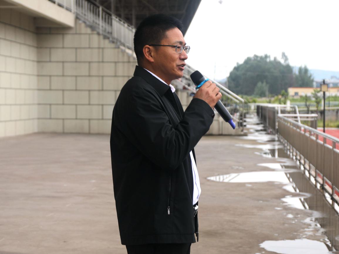 承训部队带队营长王勇作动员讲话,阐述军训的意义,提出少年强则国强,指出军训是建班建制的最好机会,对此次军训提出了三点要求:一、宽严有济;二、安全有序;三、高标高效。希望同学们改掉不良习性,形成班级凝聚力,并预祝本次军训圆满成功。