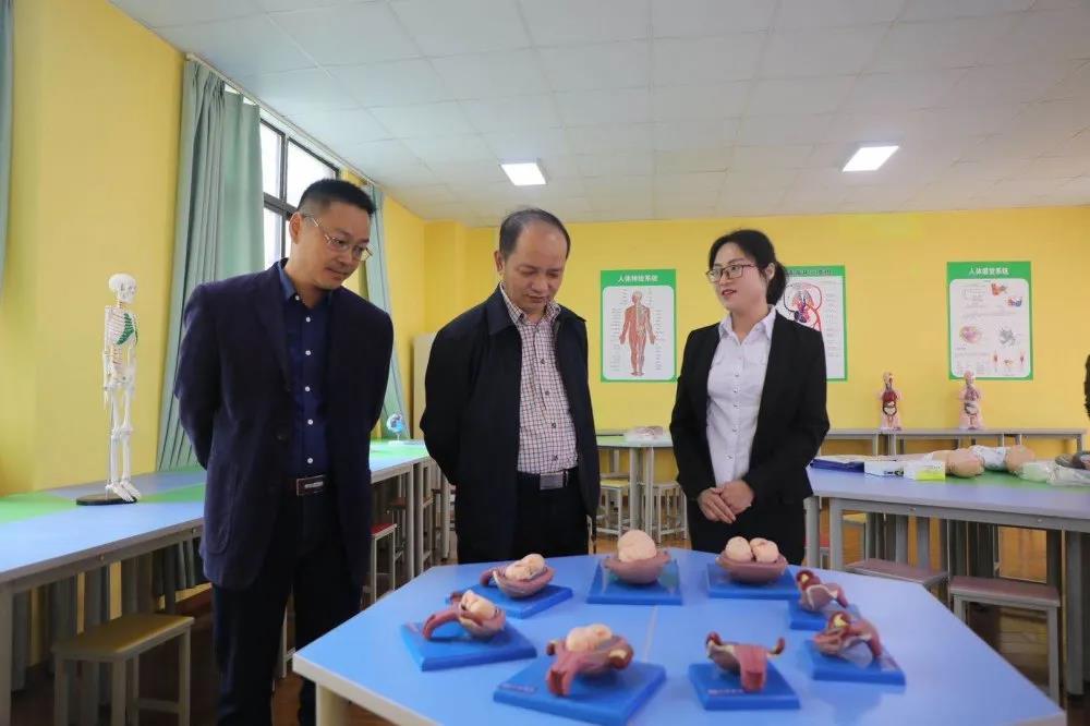 费文晓一行先后参观了学前教育系学生手工作品,婴幼儿卫生与保育实训室、奥尔夫音乐教室、蒙台梭利教室、会计专业电算化实训室和图书馆。赵波介绍了学校的办学定位、系部建设、师资力量等情况。