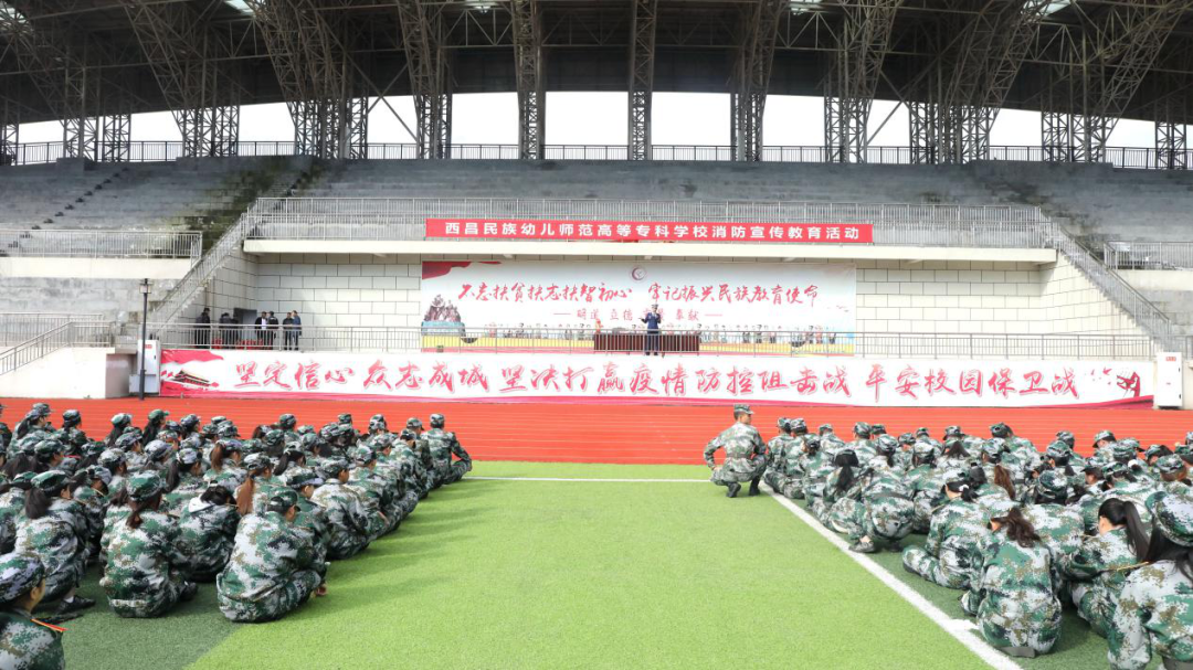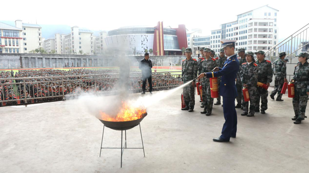 消防演练前,武装保卫处组织师生召开动员大会,学习消防安全知识,解读疏散演练方案,了解演练疏散的集中点和路线。学校纪委书记沙德康担任此次演练的总指挥,武装保卫处、后勤管理处、学生工作处负责人担任副总指挥,凉山州消防支队宣传科周鹏进行现场指导。