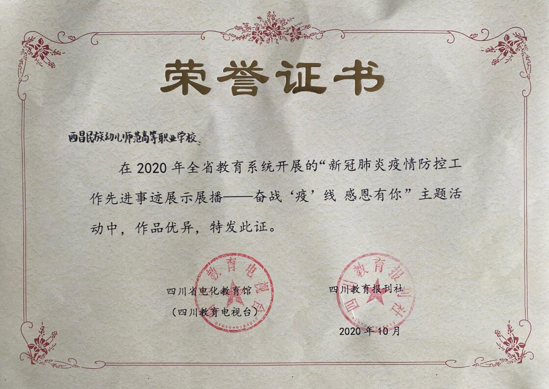 疫情期间,官方微信、微博、易班等平台从未“断档”,严格做到每日更新,增设《战“疫”情》专栏,邀请相关老师、专家从体育锻炼、心理辅导、电影赏析、读书推荐等方面入手,发布科学有效的放松身心、心理疏导、人文关怀等内容;开展《“宅”生活作品征集》、《春日诗语朗读会》等活动,广大师生以网文、诗歌、视频、照片、音频、书画等形式,丰富居家防疫生活,弘扬战“疫”正能量。先后得到学习强国、教育导报、中国高教之窗、四川教育发布等媒体报道24次,累计点击量达13万人次,学校在2020年全省教育系统开展的“新冠肺炎疫情防控工作先进事迹展示展播——奋战”疫“线 感恩有你”主题活动中表现优异,荣获优秀集体。