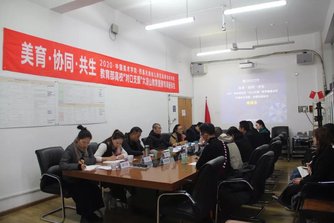 培训期间,两校就“十四五”期间对口支援美术学科专业建设、教师能力提升、民族文化传承创新,选派优秀教师、研究生、专家挂职支教,启动专项人才培养计划,推动“乡土学院”落地落实,校园文化建设、美育教育中心、非遗工坊建设等方面进行深入探讨并达成共识。