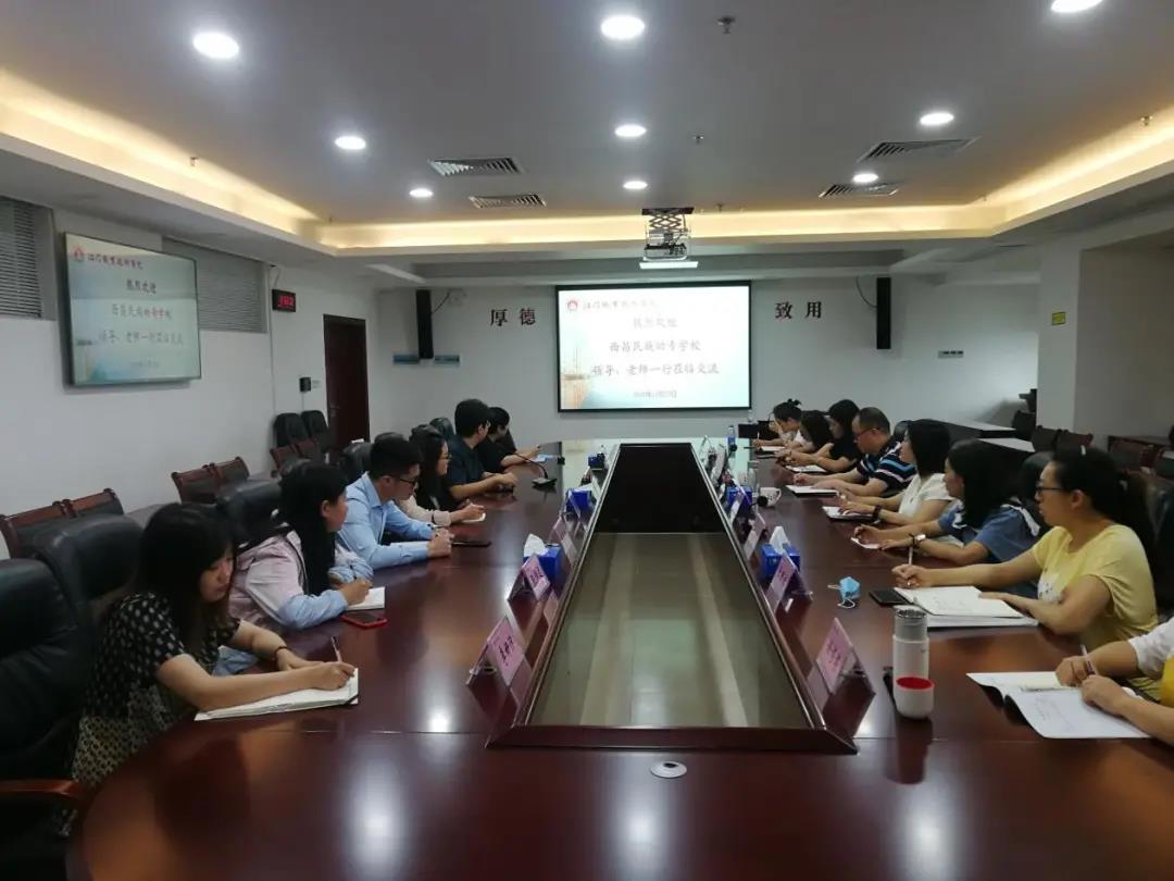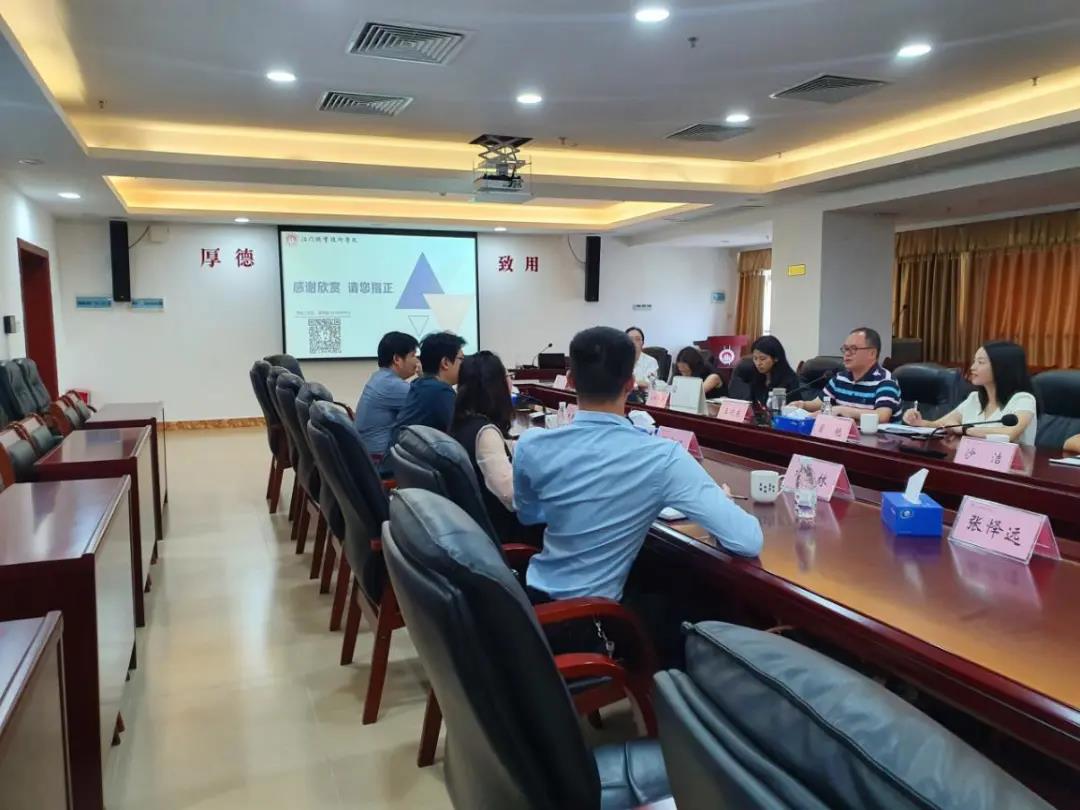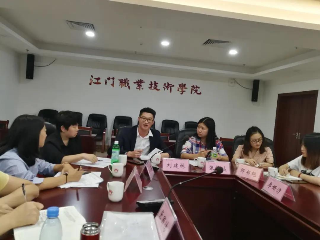 11月22日,王晓东一行与江门职业技术学院人事处处长宋旭明、学生处科长高升镇、经管学院副院长赵明凤等相关部门负责人在厚学楼707会议室举行座谈会,交流关于学生管理的模式及做法、如何做好大学生的班主任工作、课程建设及科研申报指导等。会上,宋旭明对王晓东一行表示热烈欢迎并详细介绍了学校基本情况。高升镇分享了江门职业技术学院自建校以来学生工作模式及做法,分享其“育人1+2+3+4+5模式”、效果显著的“易班网络思政”、如何做好大学生的班主任工作里的“1+1+6模式”。赵明凤从课程建设的目的、课程建设内容、课程建设案例及课程建设四个方面讲解了如何做好课程建设以及课程建设的重要性,并就课题申报提出建议,让参训人员受益匪浅。