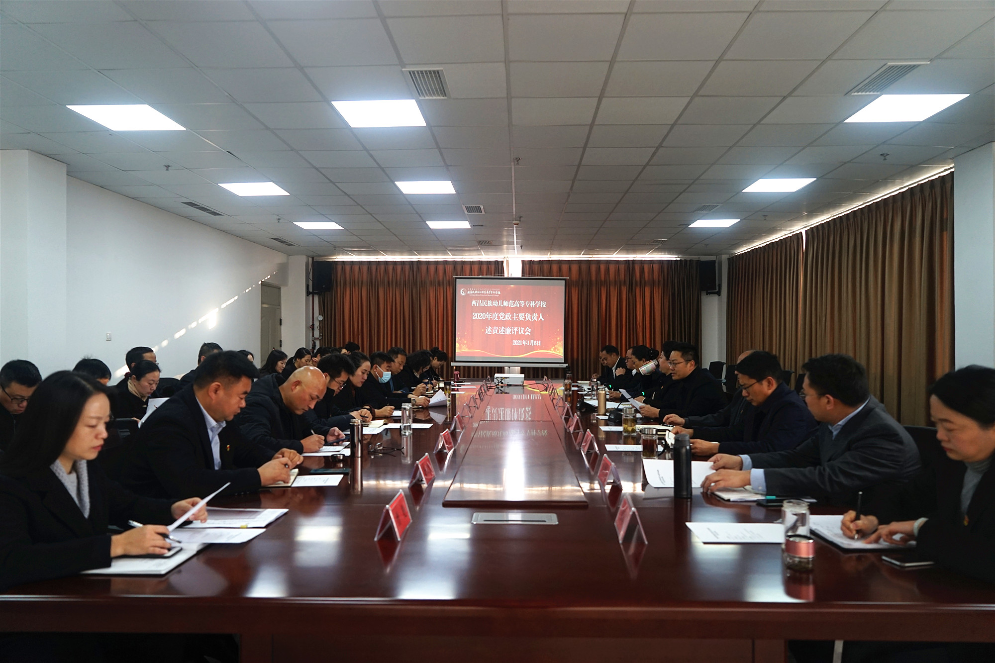 为落实全面从严治党党主体责任,为学校高质量发展提供坚强的政治保障,1月6日上午,学校在行政楼1508召开2020年度党政主要负责人述责述廉评议会。全体校领导、党委班子成员、各系部处室负责人、各支部负责人参加会议。会议由党委书记石芳主持。