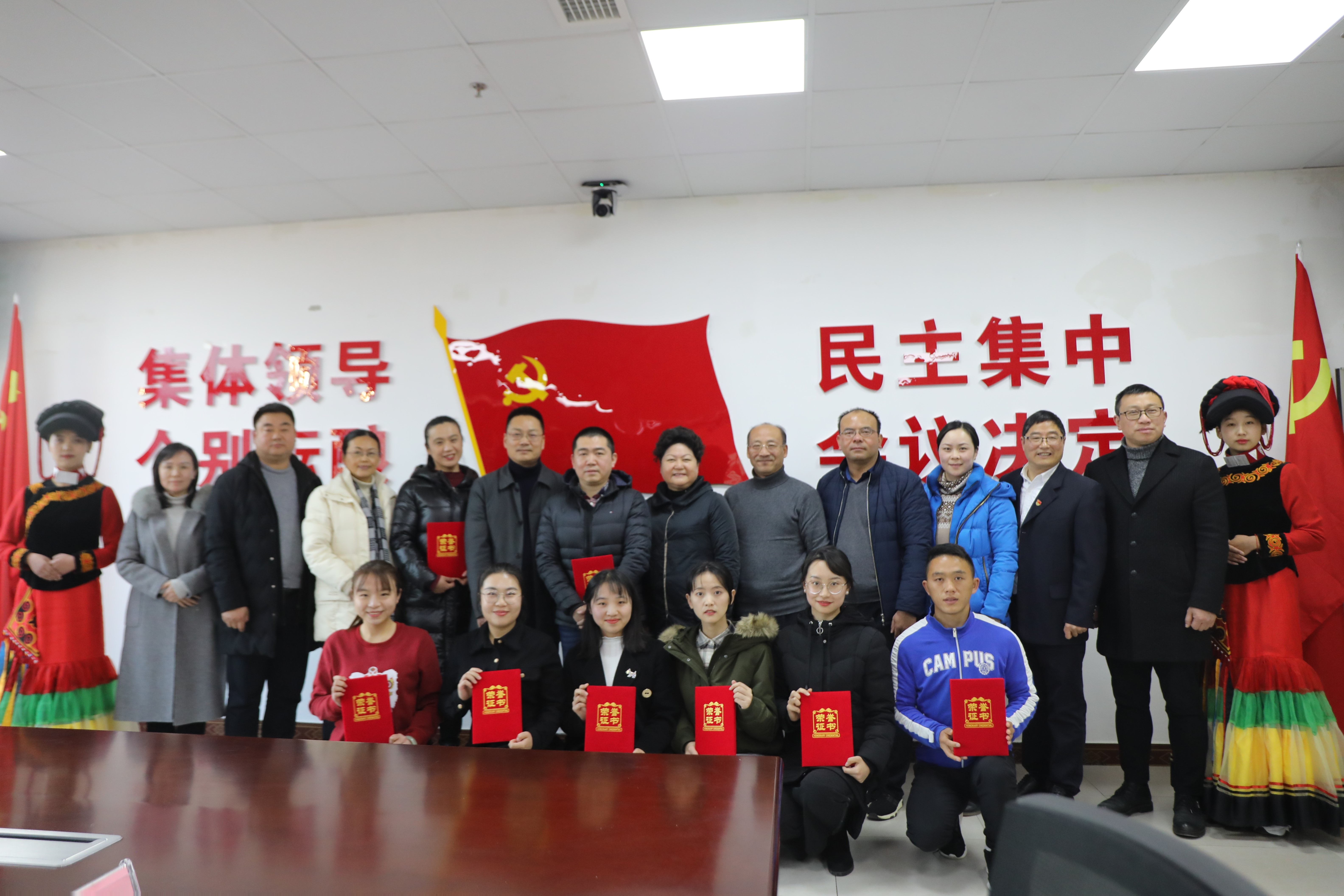 会后,学校领导为挂职干部、支教教师颁发聘书并赠予纪念品,全体参会人员合影留念。