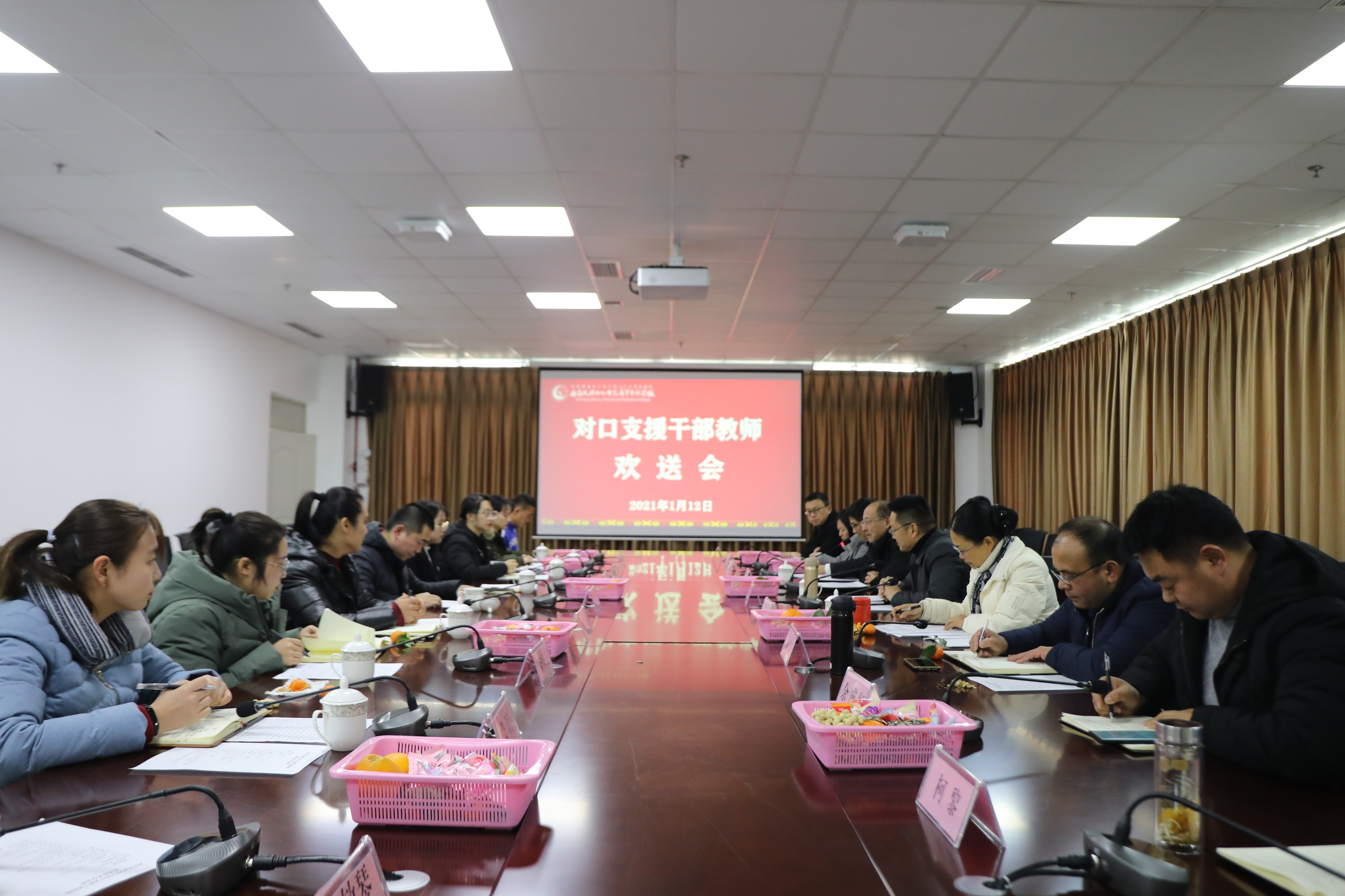 1月12日下午,学校对口支援干部教师欢送茶话会在行政楼1508召开,学校校长赵波、副书记王玉萍、副校长(挂职)成国志、相关系部处室负责人,与对口支援教师干部参加会议,会议由成国志主持。