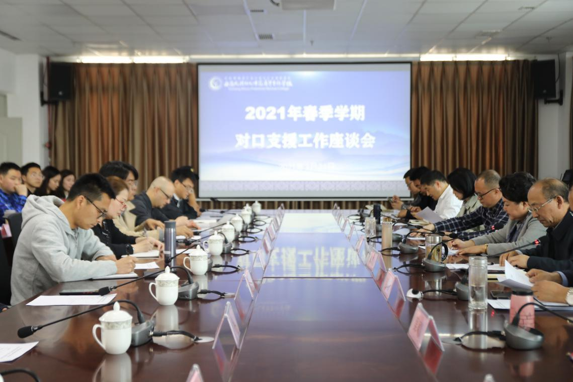 3月24日下午,2021年春季学期对口支援工作座谈会在行政楼1508会议室召开。党委书记石芳,党委委员、副校长(挂职)成国志,党委委员、副校长王晓东及相关处室、系部负责人出席会议。参加会议的还有28名对口支援高校挂职干部、支教教师。会议由成国志副校长主持。
