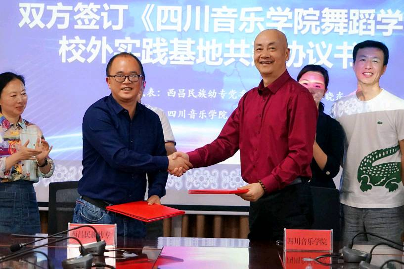 王晓东,高小军代表双方学校签订《四川音乐学院舞蹈学院校外实践基地共建协议书》,并举行了共建实践基地揭幕仪式,建立了深度长远的合作关系。
