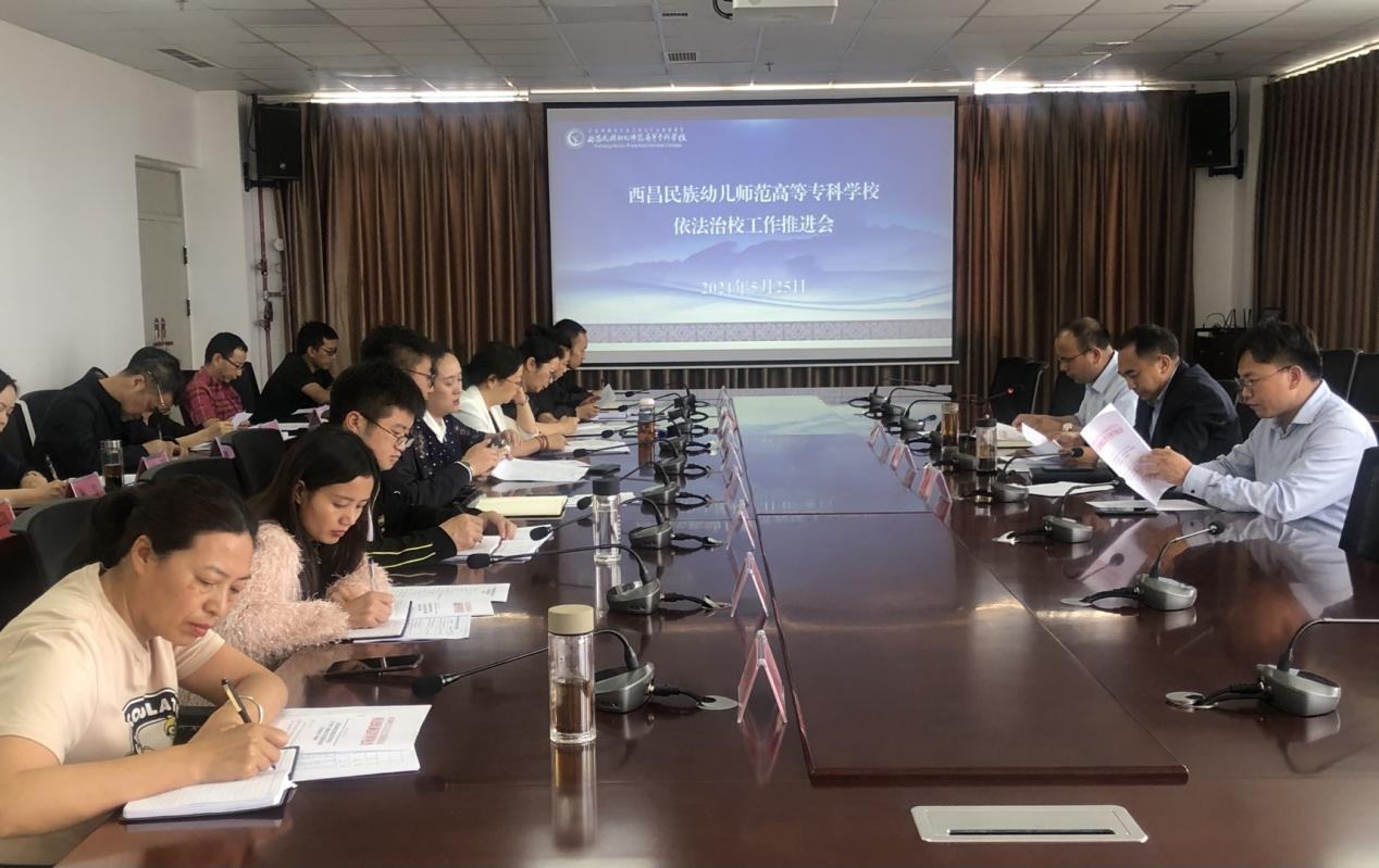 党委委员、副校长马辉强调:一要加强学习,提高认识,通过依法治校规范用权,加强制度建设,使学校机制更加科学、规范。二要抓好落实,统筹协调,树立全校一盘棋观念,各牵头部门要按照《西昌民族幼专加强法治工作推进依法治校工作实施方案》,确保依法治校工作平稳铺开。三要强化宣传,营造广大师生勤于学法、严于尊法、善于用法的氛围,进一步推进学校依法治校工作。
