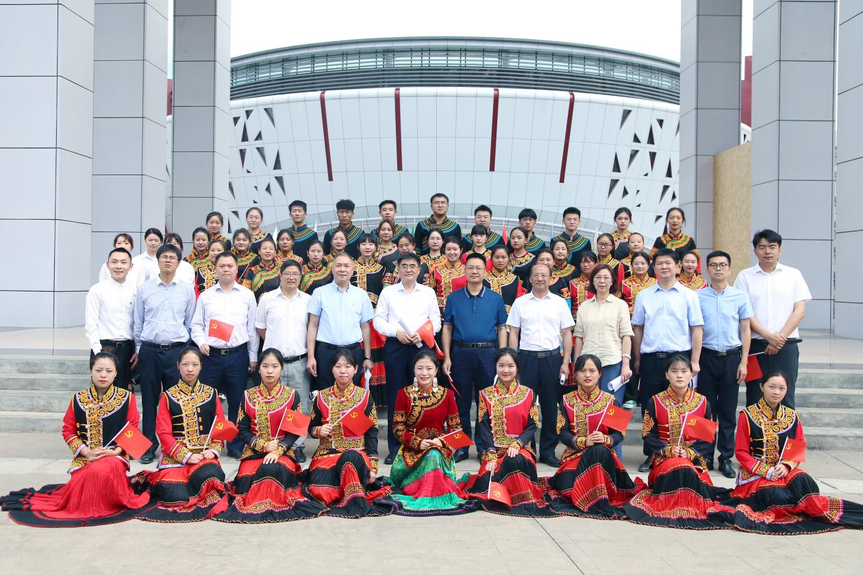 赵波校长、成国志副校长(挂职)陪同赵金洲校长一行先后参观了学校教学楼、艺术楼、综合楼、图书馆等校园建设,并在雏鹰剧院对口支援旗台前观看了由西南石油大学支教干部教师与学校思想政治教育专业学生共同演唱的《西油西幼一家亲》支教队之歌。