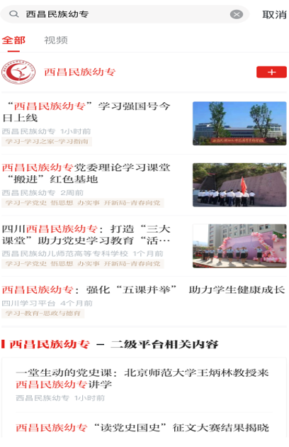 方法一、下载“学习强国”APP,在搜索框内搜索“西昌民族幼专”,点击“+”订阅