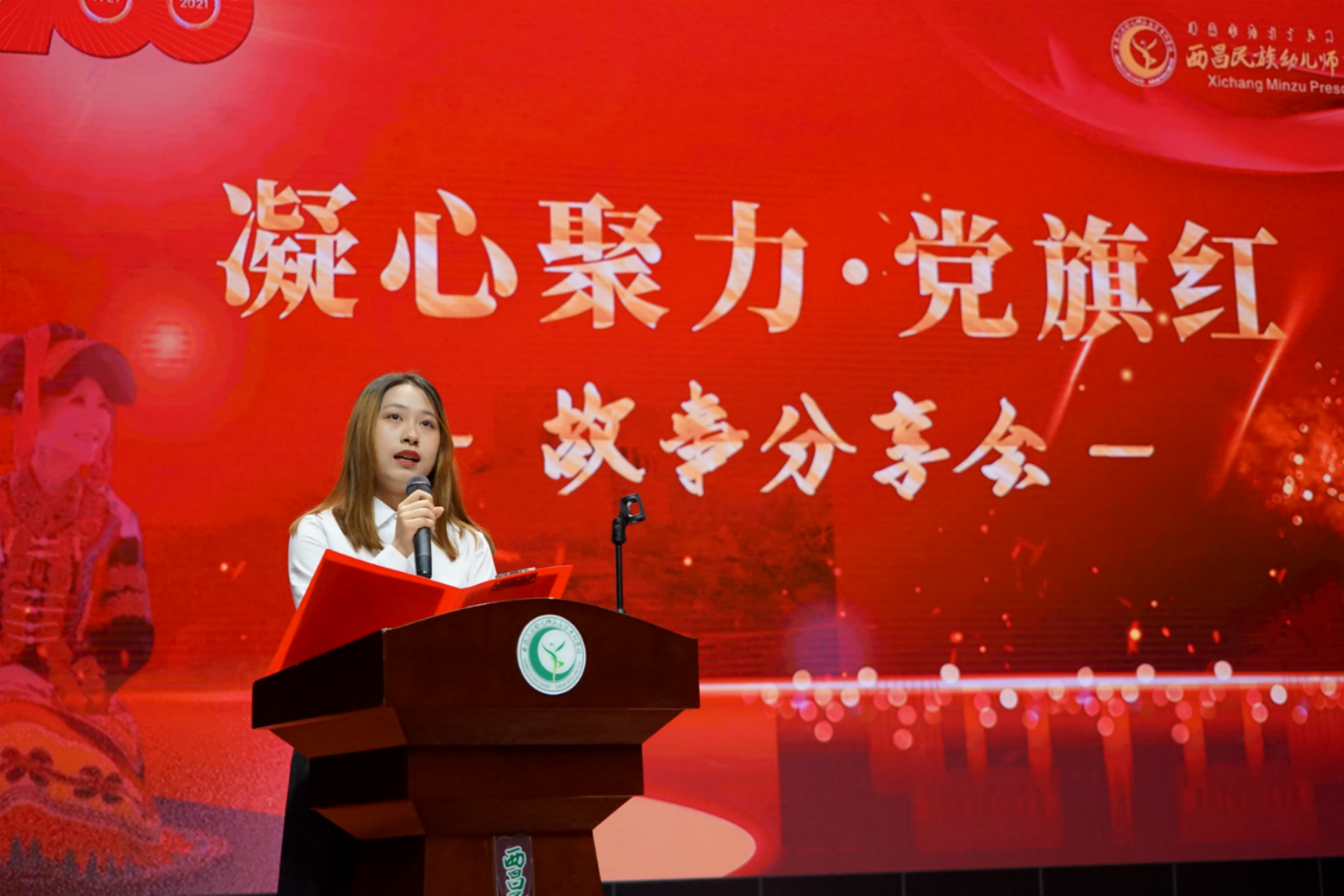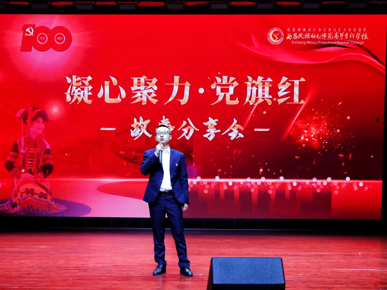 为庆祝中国 共产党成立100周年,扎实推进党史学习教育走深走实。6月8日下午,学校在雏鹰剧院举办“凝心聚力党旗红”故事分享会,学校党委副书记、工会主席王玉萍,副校长侯中太,党委委员、宣传统战部邹春芸部长、相关单位负责人以及300多名师生代表,用热烈的的掌声与温暖的泪水,共同聆听了这堂不同凡响的思政课。