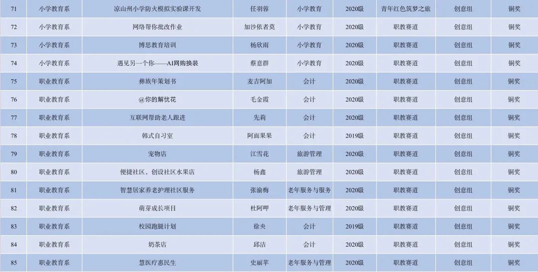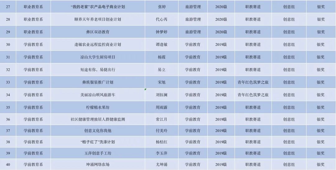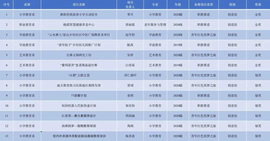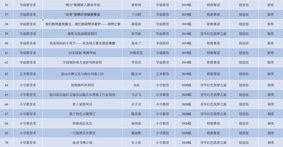 为进一步做好我校第七届“互联网+”大学生创新创业大赛项目的遴选工作,提高参加省赛项目的质量。6月15日,由学工部主办,西昌民族幼专“我敢闯,我会创”第七届国际“互联网+”大学生创新创业大赛校赛成功在线上举办。评委组秉承公平公正、突出创意的原则,对537项参赛作品进行评审,指导同学们更加准确把握用户痛点,真正走进市场,洞察用户本质需求,考虑创新特色与发展空间,进一步增强项目说服力。经过对项目计划书认真评审,大赛评选出金奖6项、银奖57项、铜奖57项。