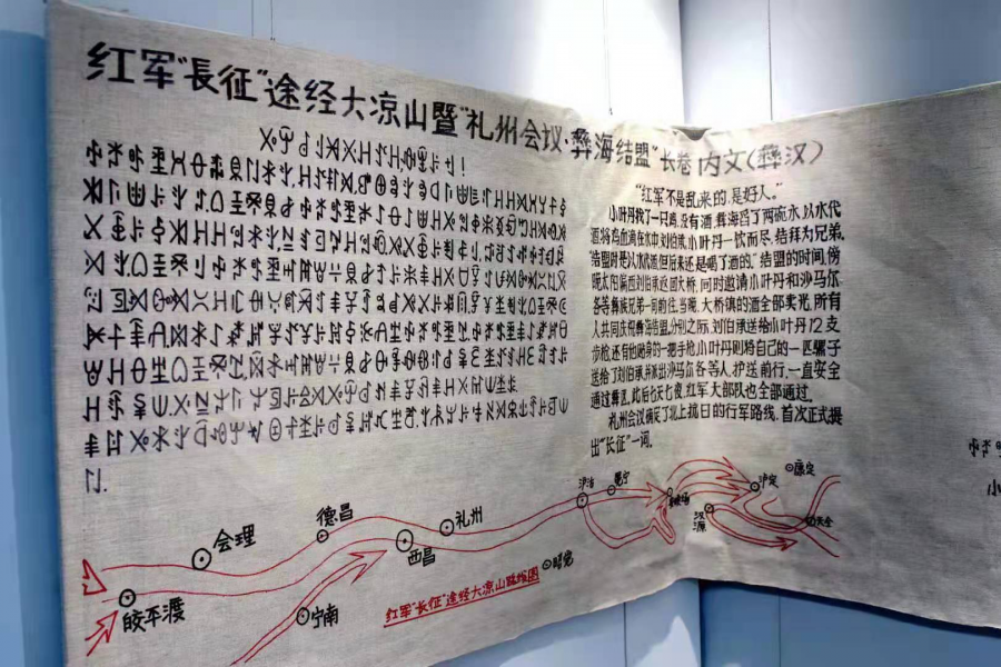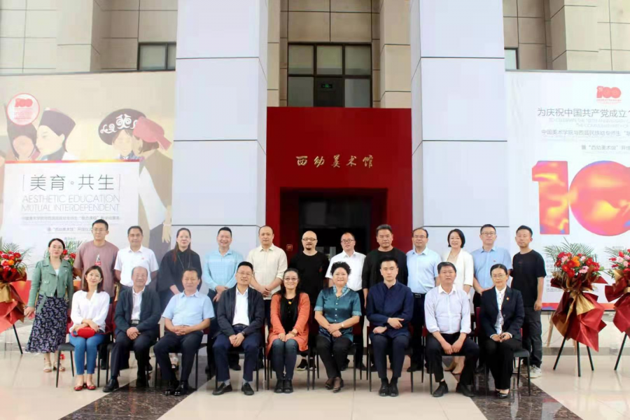 “自2019年高校对口支援工作启动以来,中国美术学院发挥自身专业优势,以彝族文化作研究对象,积极探索民族师范课程结合地方文化的教学模式,协同西幼寻找适合本民族幼儿教育的课程开发,结合今年建党100周年主题和党史学习教育要求,中国美院与西幼师生深入昭觉、冕宁、美姑等彝区,重走‘彝海结盟’革命长征路,开展‘传承红色基因,培育时代新人’的联合课程授课、讲座和创作指导,进行非遗采风和‘文化还原’联合课程实验教学,结合大凉山丰富独特的文化资源优势,积极探索乡土学院教学育人模式的在地实践,这生动体现了中国美术学院帮扶民族地区教育的赤诚之心,更是新时代彝海结盟精神的弘扬。”在开馆仪式上,西昌民族幼专党委书记石芳对中国美术学院的支援建设表示了感谢,对学生的课程实践活动给予了肯定。