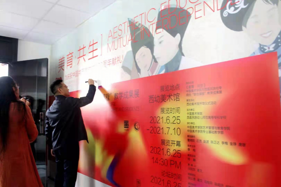 “在庆祝党百年华诞的重大时刻,在两个一百年交汇的重要历史节点,在‘十四五’的开启之年,中国美院和西幼师生‘共生’的美育展览馆别具匠心,全景式、全方位展现凉山脱贫攻坚带来的巨大变化、西昌民族幼专美育教学发展历程,宣誓我们党的初心、使命,我们学校的教育教学理念,这是非常必要的,也是很有意义的,这也必将有力促进西昌民族幼专高质量内涵式发展。”西昌民族幼专党委副书记、校长赵波表示,学校将继续在此教育教学实践模式上创新,紧跟国家及省州战略部署,聚焦“为基础教育服务、为乡村振兴服务、为民族地区服务”,深入探索高等职业教育、教师教育、民族教育发展规律,立足凉山州,面向攀西经济区,辐射川渝滇黔周边民族地区,致力将学校建成全国民族地区一流、特色鲜明的高水平幼儿师范高等专科学校。