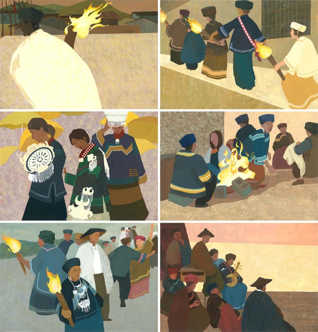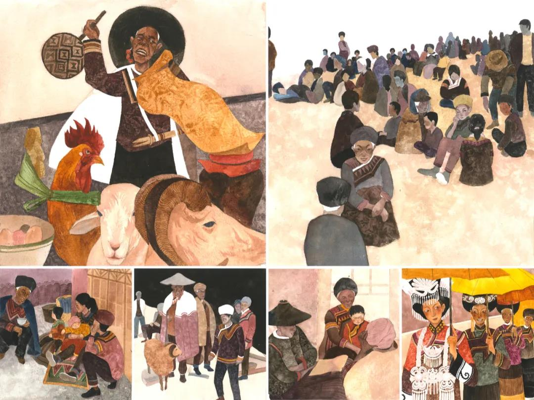 本次展出的联合课程之一的“写生绘本”如《彝海结盟》、《彝族民生》、《彝族毕摩》等是针对当下彝族的生活状态、民族风情、城市印象、革命故事、社会变迁等独特民风语境而进行的调研创作,是两校师生深入大凉山“彝族之都”昭觉进行的以“彝族节庆、毕摩祭祀、彝族革命、古彝民生、彝族文字、彝族服饰、彝族手艺、彝族集市、彝族小城、彝族历史”为主题的联合教学采风创作成果。