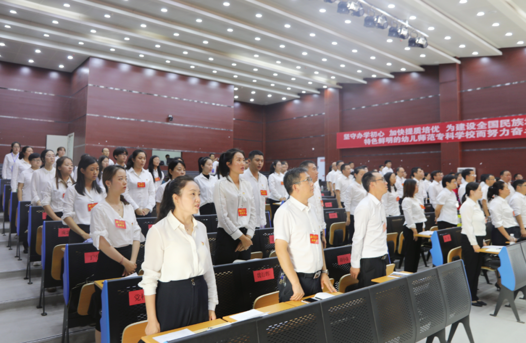 大会的主题是:坚持以习近平新时代中国特色社会主义思想为指导,坚定社会主义办学方向,落实立德树人根本任务,坚守办学初心,汲取奋进伟力,强化使命担当,加快追赶超越,凝心聚力推动学校高质量内涵式发展,为建设全国民族地区一流、特色鲜明的幼儿师范高等专科学校而努力奋斗!