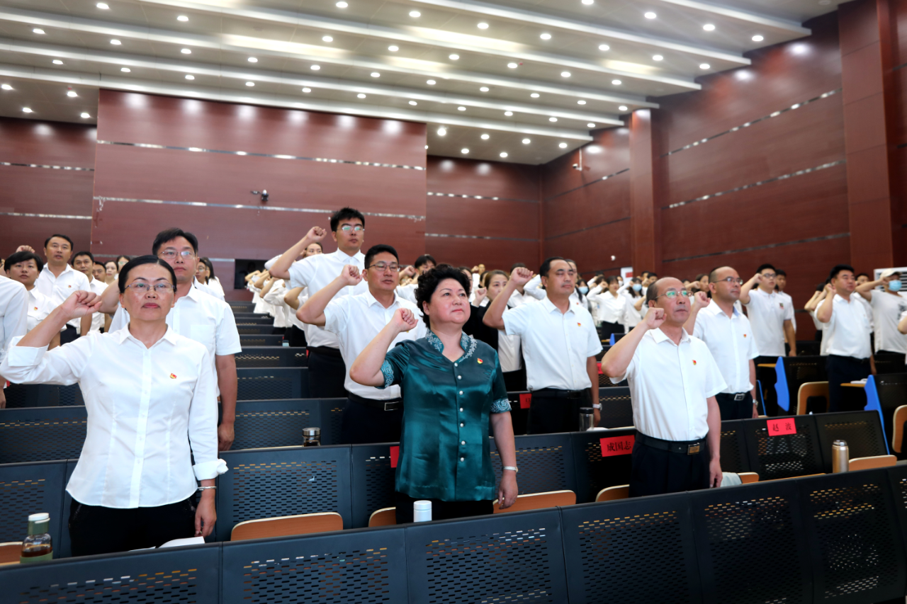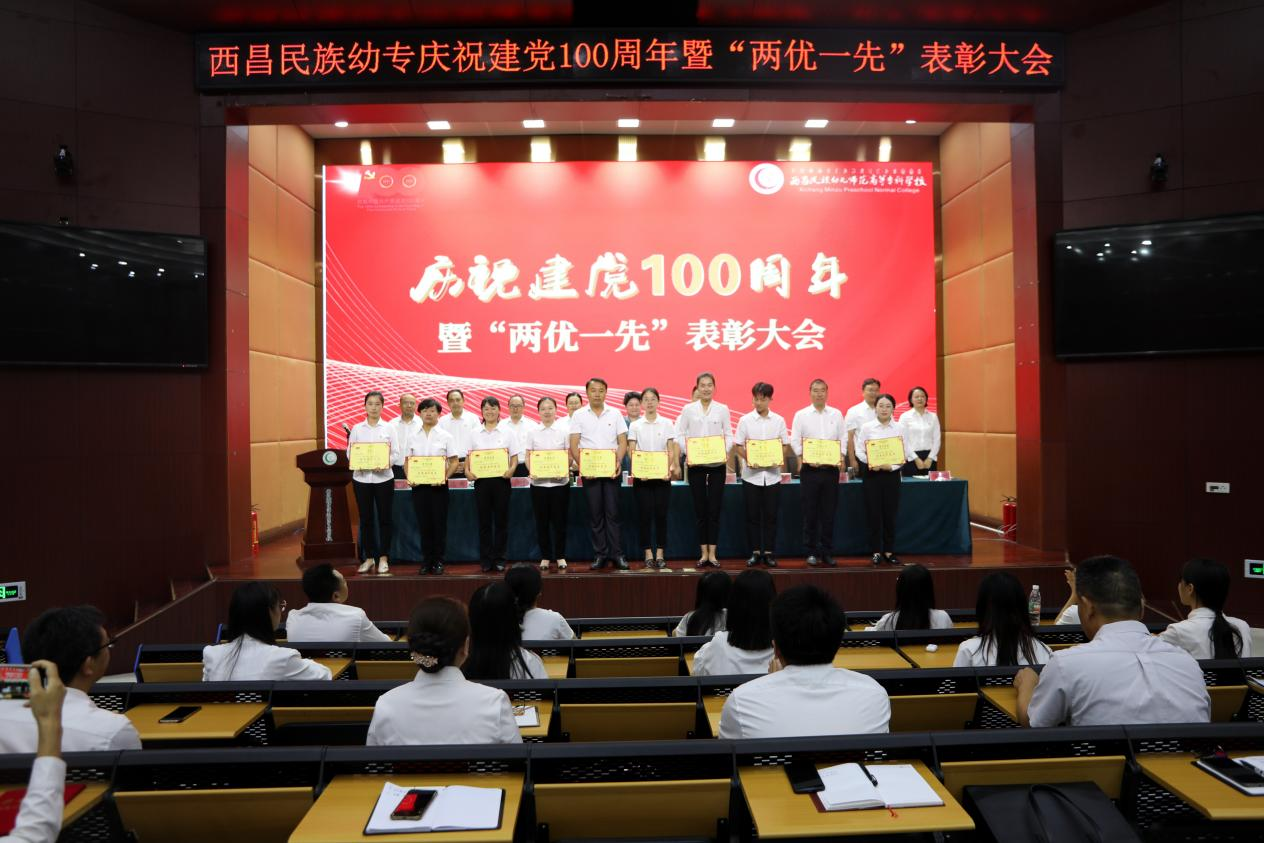 大会在庄严的升旗仪式中拉开帷幕,全体党员重温了入党誓词,观看了《辉煌百年中国 共产党百年述职报告》纪录片,学校党委副书记、工会主席王玉萍宣读了“两优一先”表彰决定,校领导班子成员为受表彰的“两优一先”同志颁奖。