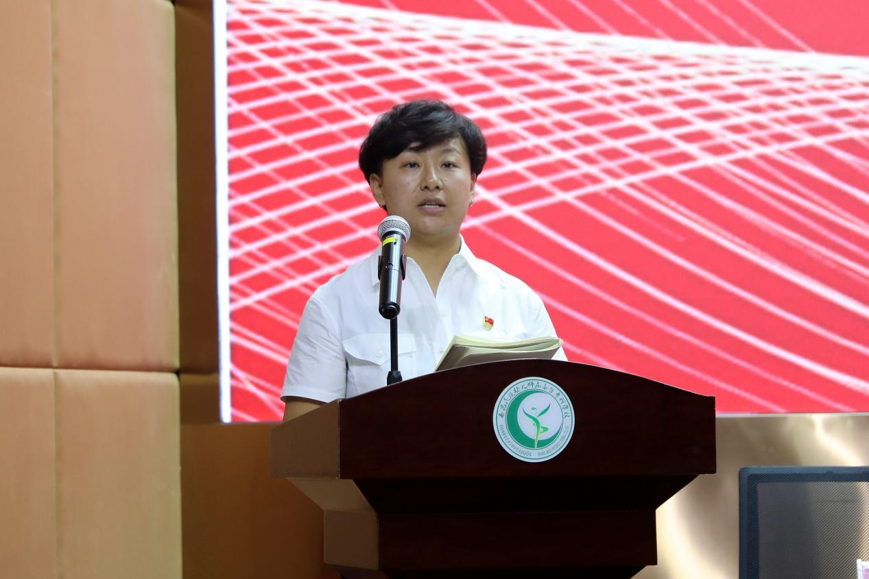 学校党委书记石芳代表学校党委向受到表彰的优秀共产党员、优秀党务工作者和先进基层党组织致以热烈的祝贺,向全体共产党员致以节日的问候,要求全体与会人员以受表彰的党员和党组织为榜样,把实现自身人生价值融入学校发展,推动学校发展,号召大家以本次大会为契机,扎实做好以下几个方面:第一、增强看齐意识,向先进党员学习;第二、强化学习教育,加强基层党组织建设;第三、落实责任担当,发挥党支部战斗堡垒作用;第四、提高业务能力,发挥党员先锋模范作用;第五、不忘育人初心、携手砥砺前行,形成全校上下艰苦奋斗、感恩奋进的生动局面。