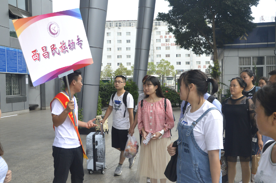 参与迎新的志愿者说到:“早上5点就起来了,一直到晚上10点才结束。虽然辛苦,但看到新生们安全到达学校一切都值了。虽然累,但心里却非常高兴。”在接站点,志愿者们密切关注着每一趟车辆到站时间。在汽车到站前5分钟左右,他们举起“西昌民族幼专”的标识牌,在出站口提示新生在指定地点集合,并将他们送上迎新专车。在回学校的途中,志愿者们积极向新生介绍学校情况,他们面带微笑,以最热诚的态度,最细致入微的服务,切实把学校的温暖和关怀传递给每一位新生和家长。