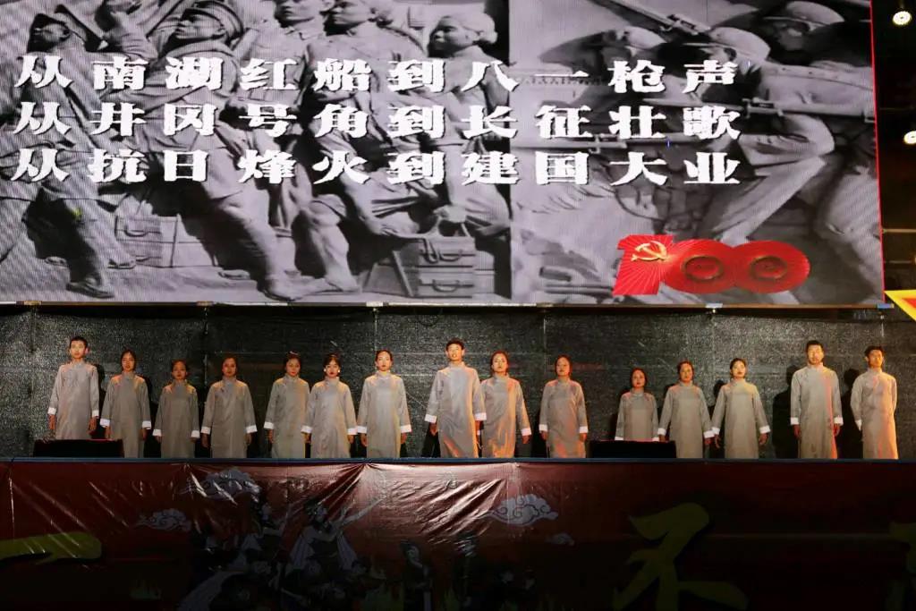 飞花万盏,秋风吹不尽明月;礼炮千声,烈酒祭不完英豪,人生代代无穷已,江月年年望相似。我举杯邀月,对影的是千千万万的英魂。历史车轮,滚滚向前,无情碾碎旧的封建主义,先进的中国 共产党,应运而生,他带领中国,走过几千年的风风雨雨,领导我们越过一个个的坎坎坷坷。1921年,7月1日,中国 共产党的诞生,犹如一道曙光,划过夜空,在东方闪烁,中国革命从此翻开了崭新的一页。下面,进入第三篇章,“百年风雨行”。
