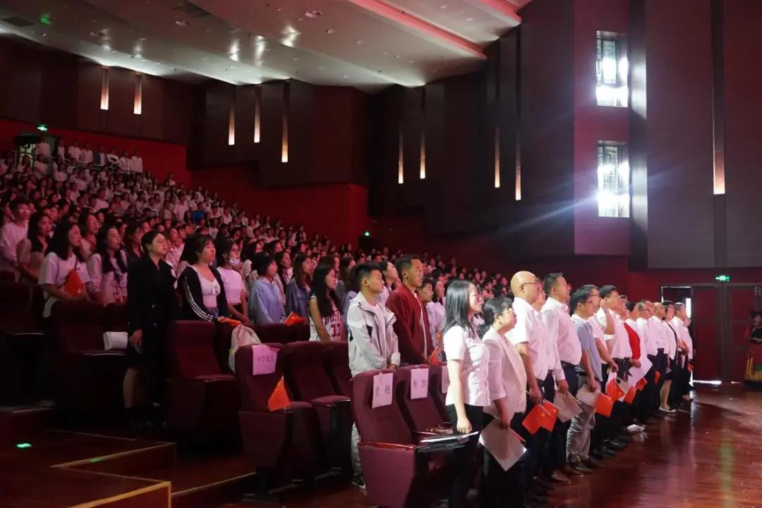 典礼在全体师生共同演唱《没有共产党就没有新中国》的歌声中圆满结束。