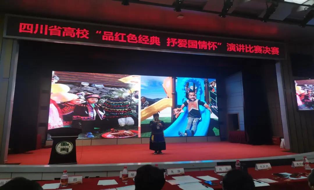 近日,四川省高校“品红色经典抒爱国情怀”演讲比赛决赛在四川师范大学狮子山校区举行,我校小学教育系19级木呷热古同学的演讲作品《回首征途,继续前进》获得一等奖殊荣。
