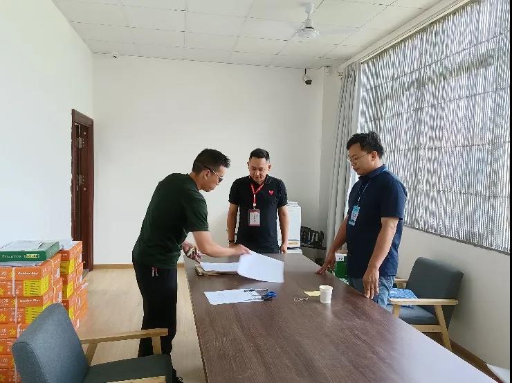 ▲侯中太副校长(右一)和龚畅(中)查看试卷保密室▲