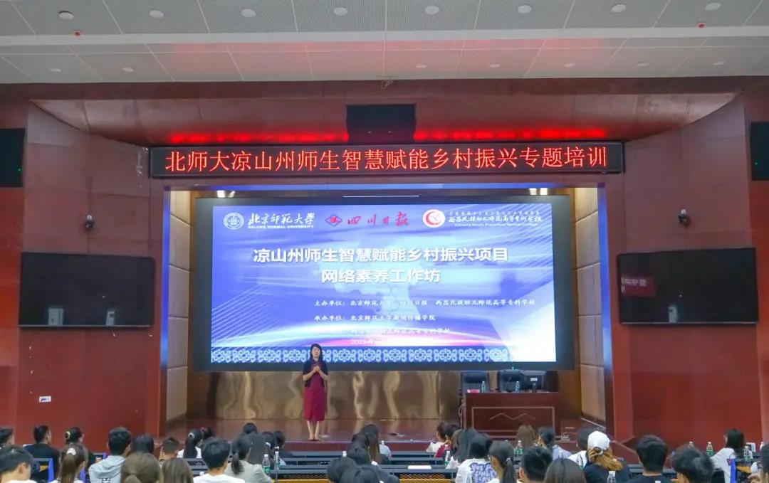 7月17日—18日,为更好的让我校融媒体中心及新闻宣传员掌握与网络素养相关的知识,提高自身的网络素养,我校与北京师范大学联合开展了“北师大凉山州师生智慧赋能乡村振兴专题培训”的讲座。由北京师范大学未成年人网络素养研究中心副主任祁雪晶,中国VR\AR创作大赛秘书长朱毅诚与李倩,华中师范大学青少年网络素养行为研究中心研究员苗天长,北京师范大学新闻传播学院教授徐敬宏与周敏,北京师范大学新闻传播学院副教授姜申以及北京师范大学新闻传播学院的同学们为我校开展了为期两天的主题培训。我校融媒体中心成员及各级校组织参加此次培训。