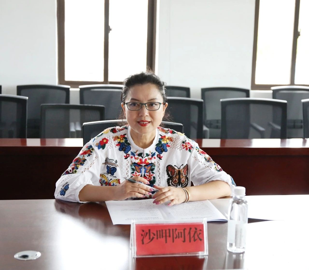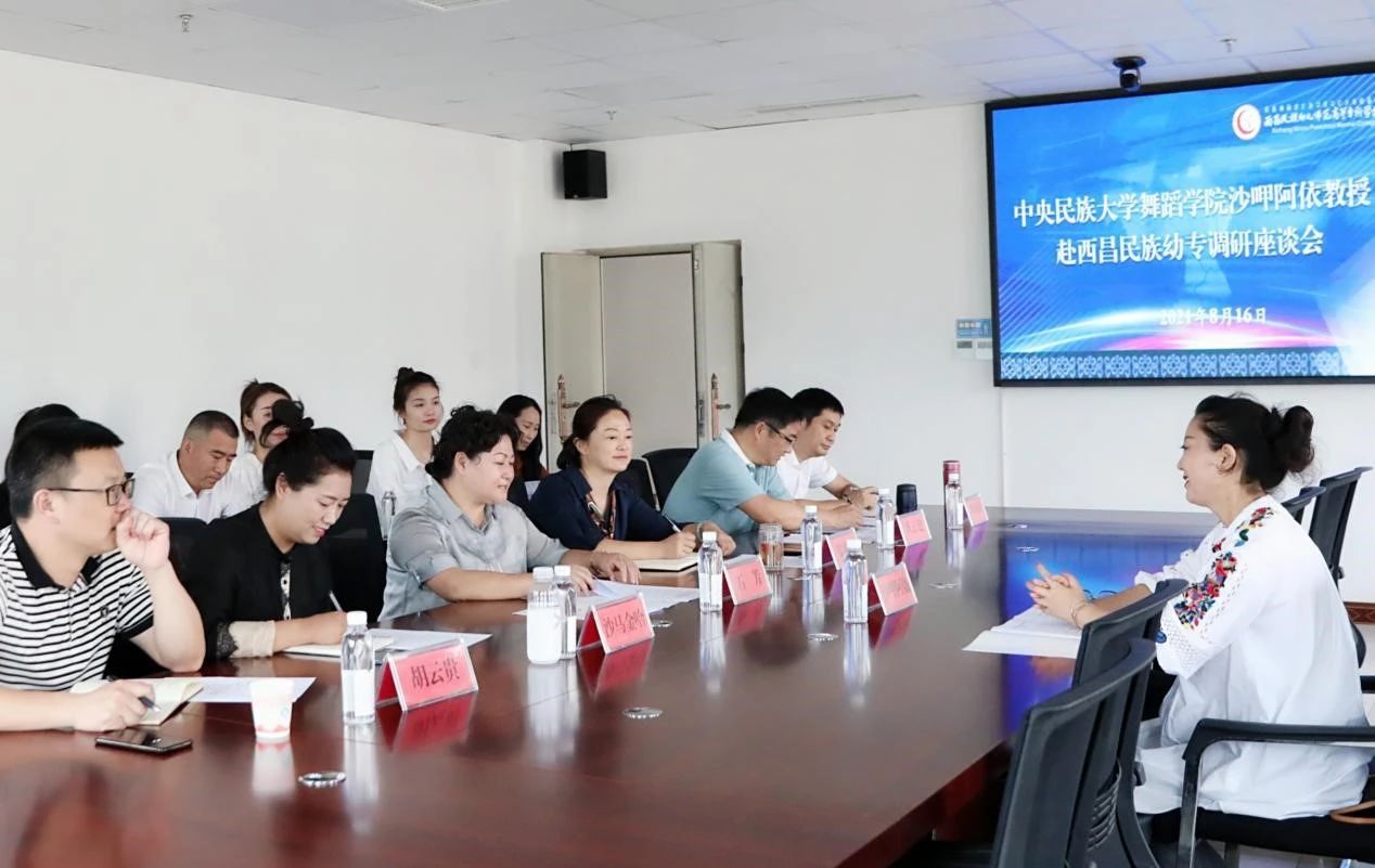 8月16日下午,中央民族大学舞蹈学院教授沙呷阿依赴我校调研并在行政楼1328参加座谈会。校党委书记石芳,党委委员、宣传统战部部长邹春芸,学校相关处室、系部负责人、音乐舞蹈教师参加座谈会并交流发言。