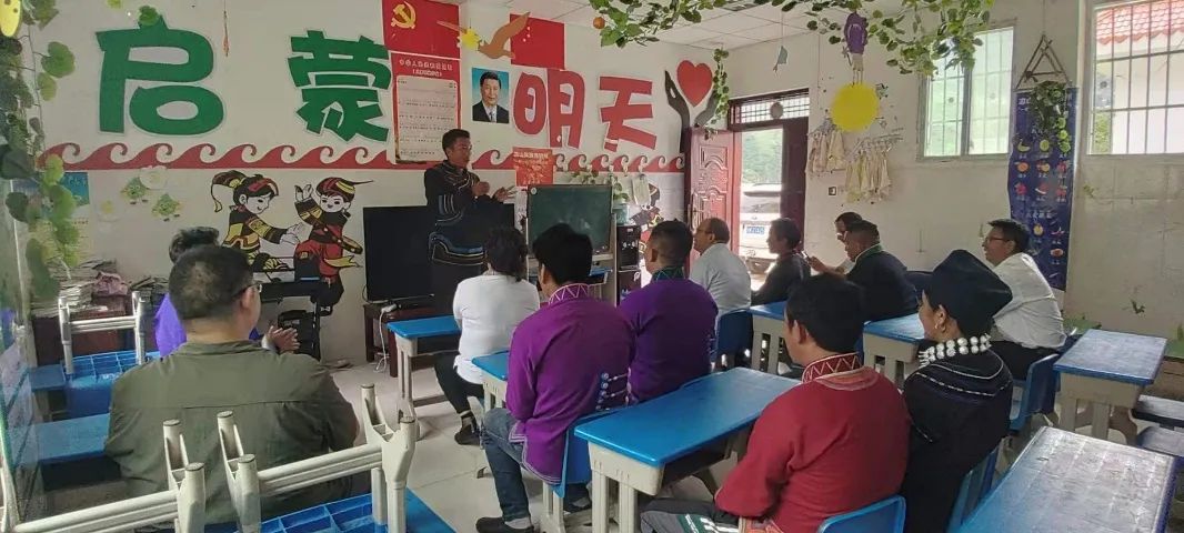 在博基村,石芳书记一行在幼教点观摩了幼儿教师的授课演示,肯定了幼教点的工作,并指出了差距和不足。石芳书记希望幼教点教师克服困难、努力学习、勇于担当,为乡村学前教育做出贡献。了解到烟叶种植是博基村的主要产业后,关切的询问了现有的种植面积、栽植技术、烘烤工艺,并提出了产业发展建议和希望。随后就幼儿师资培训、教师顶岗实习、教学设施设备提升、产业发展、乡村环境治理与村两委进行了交流。