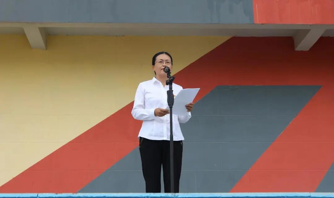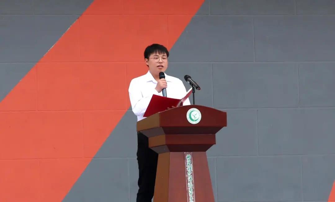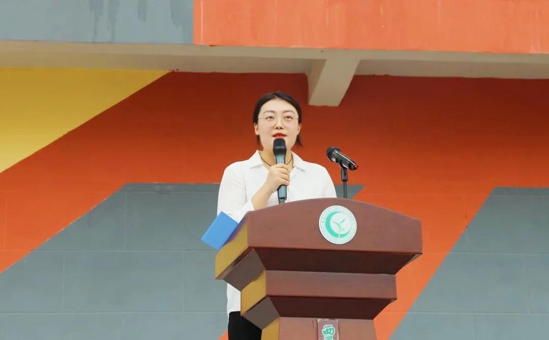 学前教育系教师刘茂媛作为教师代表发言,“未来三年,你们将在脚下这片绿茵炽道上学习、成长。作为老师,我们愿意做知识这栋漆黑大楼里的明灯,照亮你们的方向;我们更愿意做你们人生路上的灯塔,指引你们向前。让你们在未来秉承‘明道 立德 育爱 奉献’的校训——学会在自我与时代之间树立理想,勇敢担当;学会在当下与未来之间砥砺前行,不忘初心;学会在知识与实践之间求索发力,刻苦拼搏。”她寄语2021级新生,要以长为师,学以立人;要以史为师,学以立志;要以己为师,学以立心。