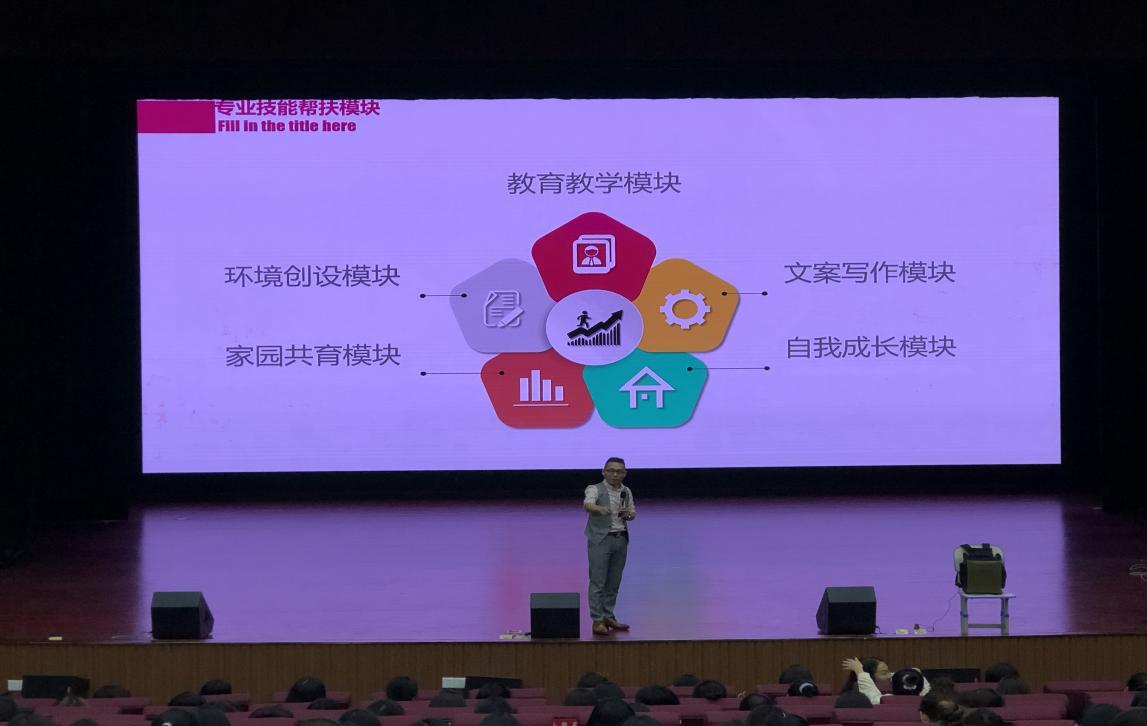 熊伟从学前教育行业背景、发展趋势、就业分析和专业服务体系四个方面进行了深入浅出的宣讲。