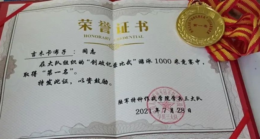 近日,从陆军特种兵学院传来喜讯,奔赴军营才4个月的我校2020级学前教育11班学生吉木卡布子,2020级体育教育1班学生罗诚,在新兵“创破记录比武”中取得优异成绩,分别荣获游泳1000米第一名和战术基础动作第三名。