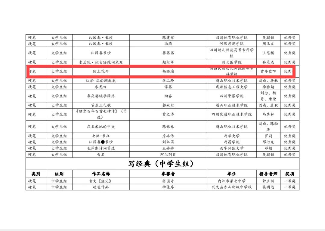▲写经典获奖名单▲