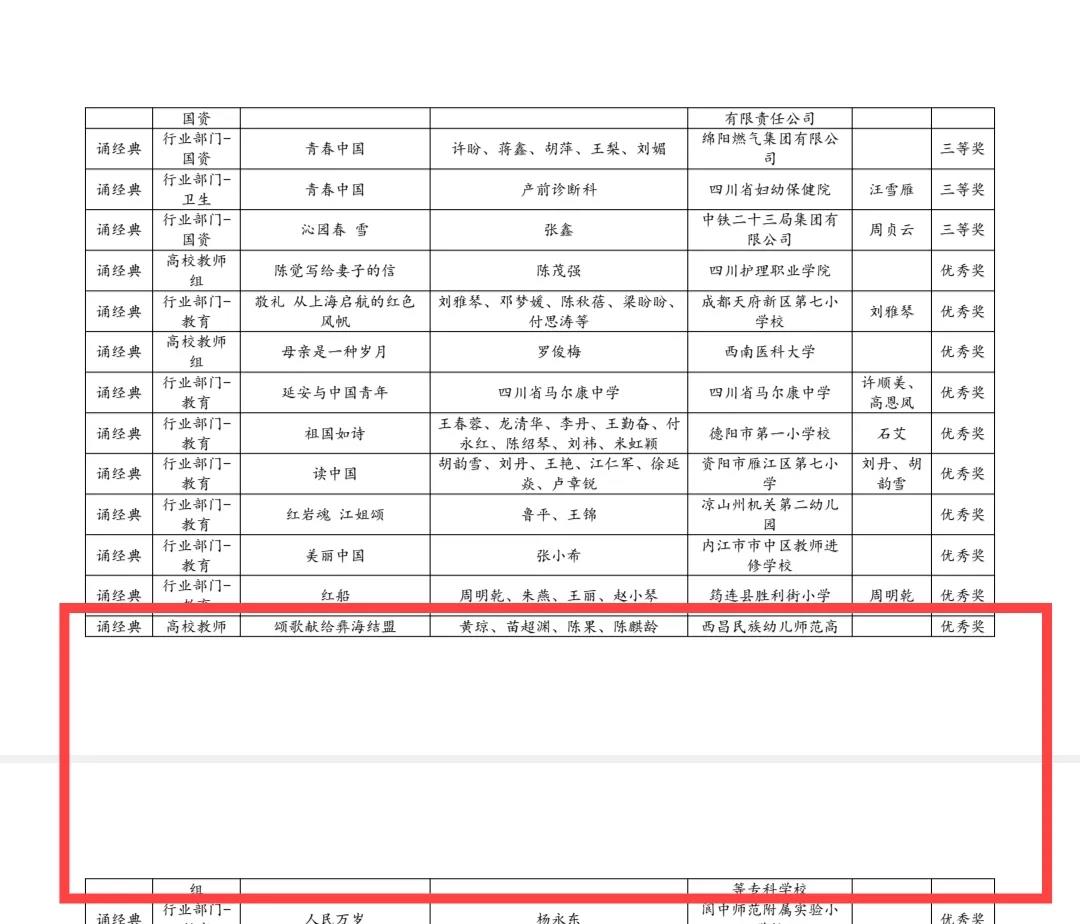 ▲诵经典获奖名单▲