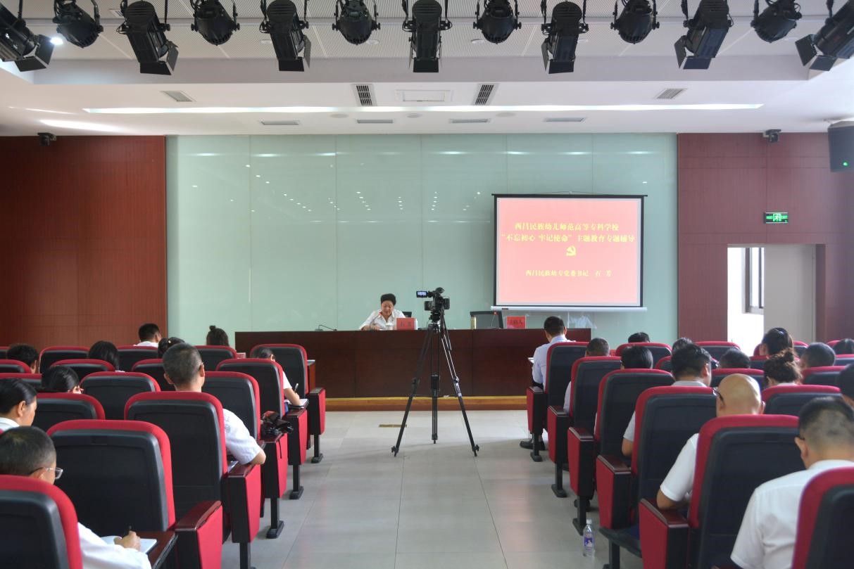 10月10 日,西昌民族幼专在图书馆学术报告厅开展了“不忘初心、牢记使命”主题教育第三期辅导讲座。讲座由学校党委书记石芳主讲,学校党委副书记、校长赵波主持,全体教职工党员参加了本次讲座。
