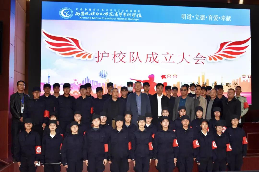 11月9日,西昌民族幼专大学生护校队正式成立。副校长侯中太,武装保卫处全体老师,护校队全体成员参加成立大会。